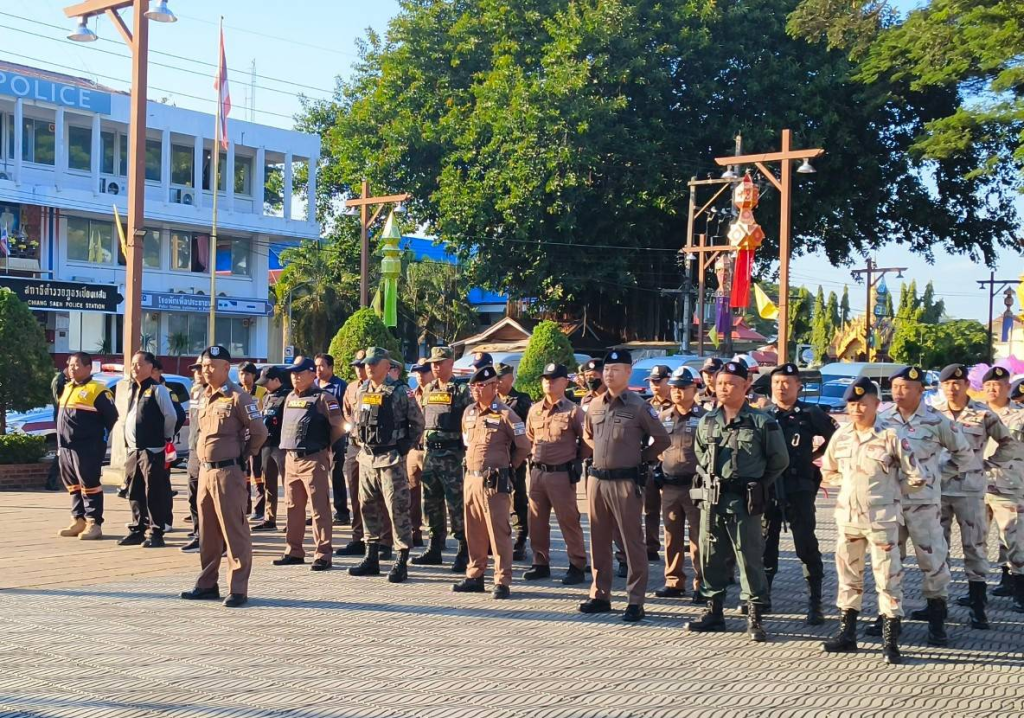 พ.ต.อ.ถนัด ชุ่มมะโน ผกก.สภ.เชียงแสน พ.ต.ต.เฉลา พงษ์ประยูร สวป.สภ.เชียงแสน บูรณาการร่วมกับหน่วยงานในพื้นที่อำเภอเชียงแสน ปกครองอำเภอเชียงแสน , นรข.เขตเชียงราย, ตำรวจน้ำเชียงแสน, ตรวจคนเข้าเมืองเชียงแสน ,ตชด. 327 ,จนท.อส.อ.เชียงแสน, ตำรวจท่องเที่ยว เชียงราย,กู้ชีพ เวียง ผาเงา ,กู้ภัย รวมใจ สยามปู่อินทร์ ร่วมปล่อยแถวระดมกวาดล้างอาชญากรรมในช่วงวันคริสต์มาสและเทศกาลปีใหม่ ประจำปี 2568 เพื่อป้องกันอาชญากรรมและการรักษาความสงบเรียบร้อย ความปลอดภัยในชีวิตและทรัพย์สินของประชาชนและนักท่องเที่ยว รวมถึงการอำนวยความสะดวกด้านการจราจรในช่วงเทศกาล ปีใหม่ 2568