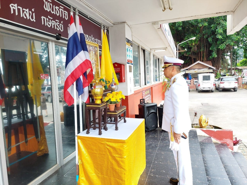 28 กรกฎาคม 2567 เวลา 07.00 น. พ.ต.อ.ถนัด ชุ่มมะโน ผกก.สภ.เชียงแสน พร้อมด้วยข้าราชการตำรวจ ในสังกัด สภ.เชียงแสน ประกอบพิธีถวายสัตย์ปฏิญาณเพื่อเป็นข้าราชการที่ดีและพลังของแผ่นดิน และร่วมลงนามถวายพระพร เนื่องในโอกาสพระราชพิธีมหามงคลเฉลิมพระชนมพรรษาพระบาทสมเด็จพระเจ้าอยู่หัว ครบ 6 รอบ 28 กรกฎาคม 2567 ณ ลานหน้า สภ.เชียงแสน
