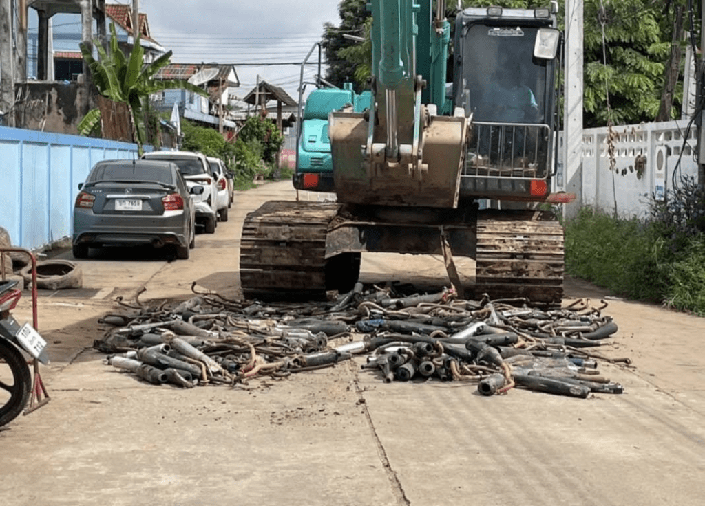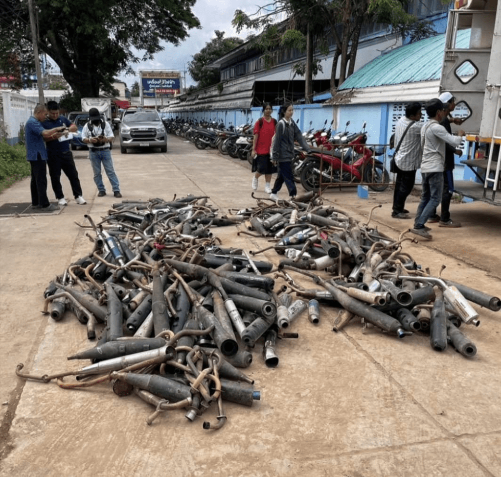 พ.ต.อ.ถนัด ชุ่มมะโน ผกก.สภ.เชียงแสน พ.ต.ท.คมกฤช ไชยสาร รอง ผกก.ป.ฯ ,พ.ต.ต.เฉลา พงษ์ประยูร สวป.ฯ พร้อมเจ้าหน้าที่ชุดจราจร และประชาชนในพื้นที่ ร่วมกันทำลายท่อไอเสีย ที่ก่อความเดือดร้อนรำคาญให้กับประชาชนที่ยึดจากรถจักรยานยนต์ดัดแปลงสภาพ เพื่อป้องกันการนำกลับไปใช้ในการแข่งรถในทางสาธารณะ ทั้งนี้ สภ.เชียงแสน จะได้ดำเนินการตรวจยึดท่อเสียดังและนำมาทำลายอย่างต่อเนื่องต่อไป สถานที่ทำลายท่อไอเสียบริเวณ ข้างโรงเรียนราชประชานุเคราะห์ 15 ต.เวียง อ.เชียงแสน จ.เชียงราย