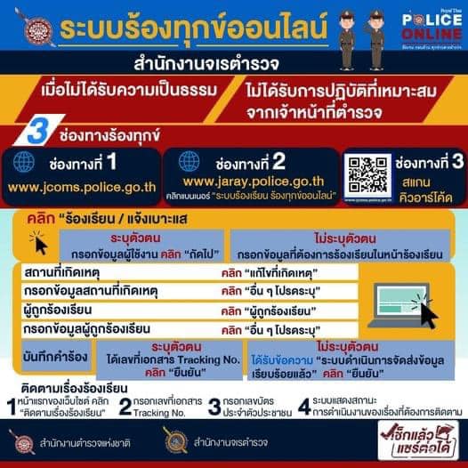 สามารถร้องทุกข์ได้ที่ “ระบบร้องทุกข์ออนไลน์” สำนักงานจเรตำรวจ ผ่าน 3 ช่องทาง