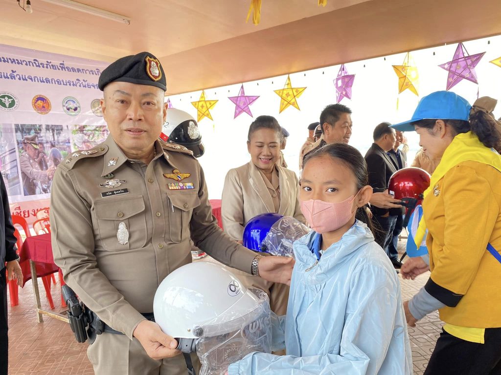 เปิดโครงการรณรงค์การสวมหมวกนิรภัยเพื่อลดการเกิดอุบัติเหตุทางถนน ช่วงวันหยุดยาวเทศกาลปีใหม่ พ.ศ.2567 (จับแล้วแจกแลกอบรมวินัยจราจร)