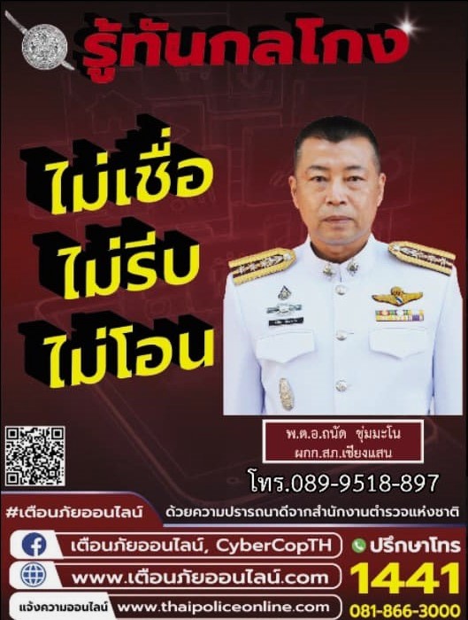 แจ้งประชาสัมพันธ์เตือนภัย ขณะนี้มีกลุ่มมิจฉาชีพ แอบอ้างตัวเป็น ร.ต.อ.สุภโชค บัวสังข์ Leave a Comment / By chiangsaen / เมษายน 30, 2024 สิงหาคม 12, 2024 !!! เตือนภัย!!! ด้วยขณะนี้มีกลุ่มมิจฉาชีพ แก๊งคอลเซ็นเตอร์ แอบแฝง อ้างตัวเป็น ร.ต.อ.สุภโชค บัวสังข์ รอง สว.สส.สภ.เชียงแสน โทรไปให้ผู้เสียหายแจ้งความออนไลน์และดูดเงินไป จำนวนสิบกว่ารายแล้ว ขอเตือนภัยประชาชน อย่าหลงเชื่อ ให้โทรสอบถามมาที่ สภ.เชียงแสน เบอร์โทร 053-777111 ( มิจฉาชีพ แสดงบัตรข้าราชการตำรวจปลอม ตามรูปไม่ใช่ ร.ต.อ.สุภโชค บัวสังข์ รอง สว.สส.สภ.เชียงแสน) โดยใช้บัตรประจำตัวข้าราชการตำรวจที่ปลอมแปลงขึ้นมา เพื่อใช้ในการหลอกลวงผู้เสียหาย