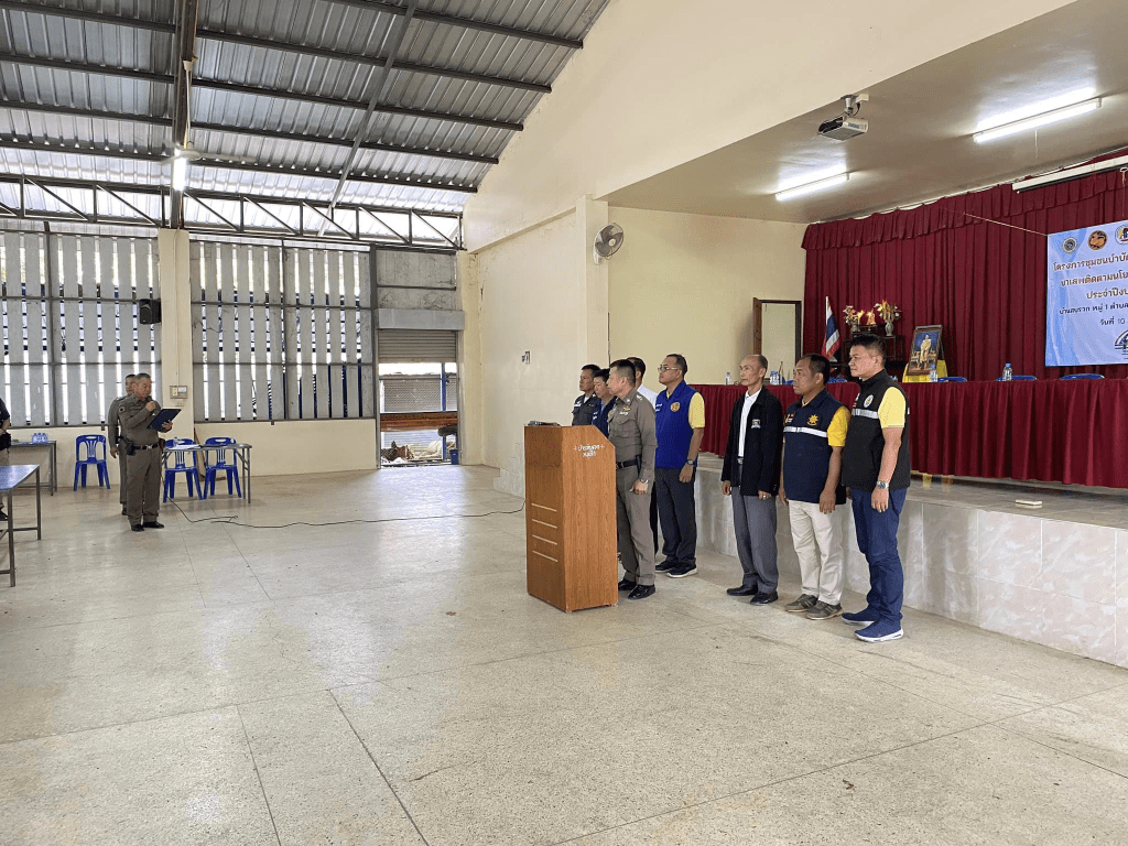 พ.ต.อ.ถนัด ชุ่มมะโน ผกก.สภ.เชียงแสน, พ.ต.ท.คมกฤช ไชยสาร รอง ผกก .ป.ฯ,พ.ต.ต.มานพ มิหายศ สวป.(ชส.)ฯ พร้อมด้วยชุด ชป.ชุมชนยั่งยืนฯ ร่วมกับ ภาคีเครือข่าย ประกอบด้วย ฝ่ายปกครองอำเภอเชียงแสน , เทศบาลตำบลเวียง, กำนันตำบลเวียง,สาธารณสุขอำเภอเชียงแสน, รพ.สต.บ้านสบรวก,ผอ.โรงเรียนบ้านสบรวก และ ร.ต.ท.ปรพล ม้าเพ็ญทม กต.ตร สภ.เชียงแสนทำพิธีเปิดโครงการ “ชุมชนบำบัดอย่างยั่งยืน ในพื้นที่แพร่ระบาดยาเสพตืด ตามนโยบายเร่งด่วนของรัฐบาล” ณ ศาลาอเนกประสงค์ บ้านสบรวก หมู่ 1 ต.เวียง อ.เชียงแสน จ.เชียงราย โดยมี พ.ต.อ.ถนัด ชุ่มมะโน ผกก สภ เชียงแสน เป็นประธานเปิด หลังเสร็จพิธีเปิดแล้ว ได้ร่วมกันลงนามบันทึกความร่วมมือ MOU