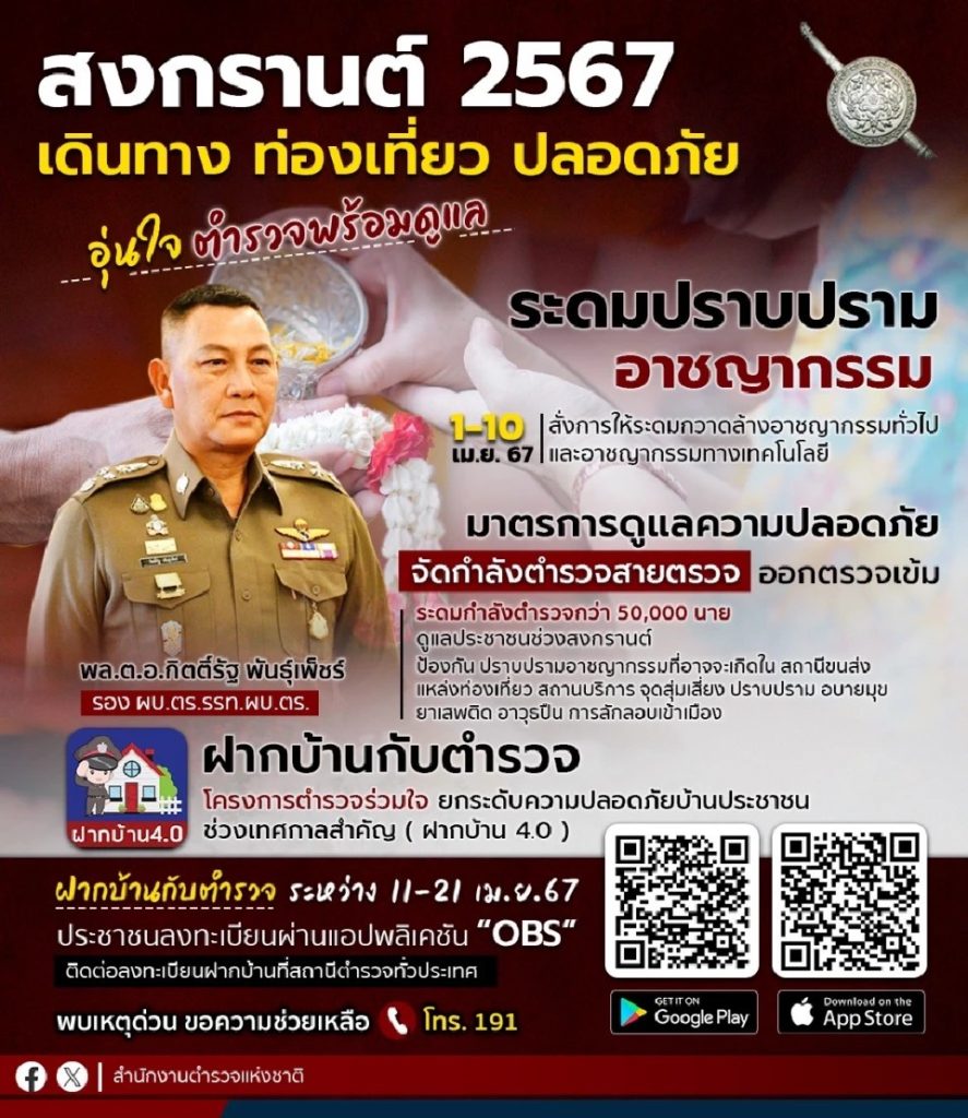 เม.ย. 11 2024เมษายน 20, 2024 “โครงการร่วมใจยกระดับความปลอดภัยบ้านประชาชนช่วงเทศกาลสำคัญ (ฝากบ้าน 4.0)” ระหว่างวันที่ 11-21 เมษายน 2567 รวมระยะเวลา 11 วัน โดยให้ประชาชนเข้าร่วมโครงการผ่านแอปพลิเคชัน “OBS” หรือที่สถานีตำรวจ ข่าวประชาสัมพันธ์, ข่าวฝากประชาสัมพันธ์ / By chiangsaen