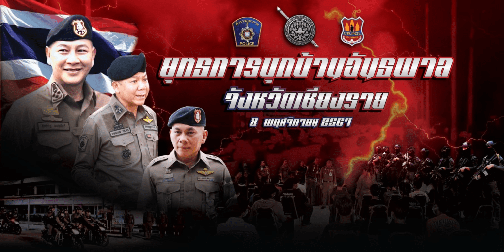 พ.ย. 7 2024มีนาคม 11, 2025 ตำรวจภูธรจังหวัดเชียงรายกำหนดให้มีการปล่อยแถวบูรณาการ ตรวจค้น กลุ่มเป้าหมายที่มีพฤติกรรมใช้ความรุนแรง มีอาวุธปืน ยาเสพติด ในพื้นที่ ข่าวภารกิจผู้บังคับบัญชา / By chiangsaen ตำรวจภูธรจังหวัดเชีย … ตำรวจภูธรจังหวัดเชียงรายกำหนดให้มีการปล่อยแถวบูรณาการ ตรวจค้น กลุ่มเป้าหมายที่มีพฤติกรรมใช้ความรุนแรง มีอาวุธปืน ยาเสพติด ในพื้นที่ อ่านต่อ »