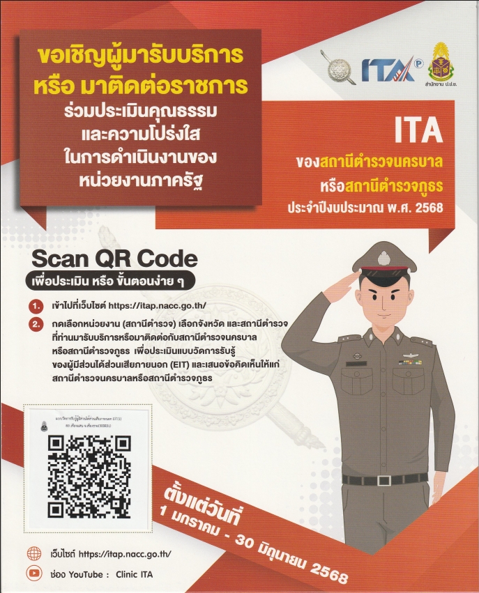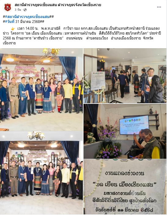 O6 การประชาสัมพันธ์ข้อมูลผลการดำเนินงาน การประชาสัมพันธ์ข้อมูลผลการดำเนินงานของสถานีตำรวจภูธรเชียงแสนประจำปีงบประมาณ 2568 เผยแพร่บนเว็บไซต์หลักของสถานี การประชาสัมพันธ์ผลการดำเนินงานของสถานีตำรวจภูธรเชียงแสน ภารกิจผู้บังคับบัญชา สถานีตำรวจภูธรเชียงแสน ช่องทางการเผยแพร่ผ่านหน้าเว็บไซต์หลักของสถานีตำรวจ และสื่อสังคมออนไลน์ ได้แก่ Facebook/Line สามารถเข้าชมข้อมูลผลการดำเนินงานของหน่วยได้ตามช่องทางด้านล่างนี้ การประชาสัมพันธ์ผลการดำเนินงานของสถานีตำรวจภูธรเชียงแสน ผ่านทางสื่อโซเซียลมีเดีย (Facebook) ประจำปีงบประมาณ 2568 มีข่าวสารการประชาสัมพันธ์ข้อมูลการตอบแบบวัด EIT ของหน่วยงานผ่าน Link หรือ QR Code อย่างชัดเจน